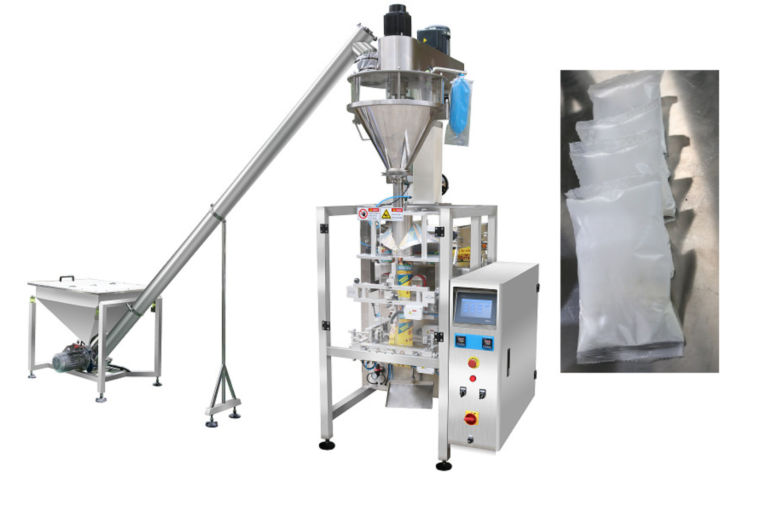 Mesin vertical packaging with auger system biasanya digunakan untuk mengemas suatu produk dengan jenis powder satau tepung dengan kemasan 100 – 1000 gr.